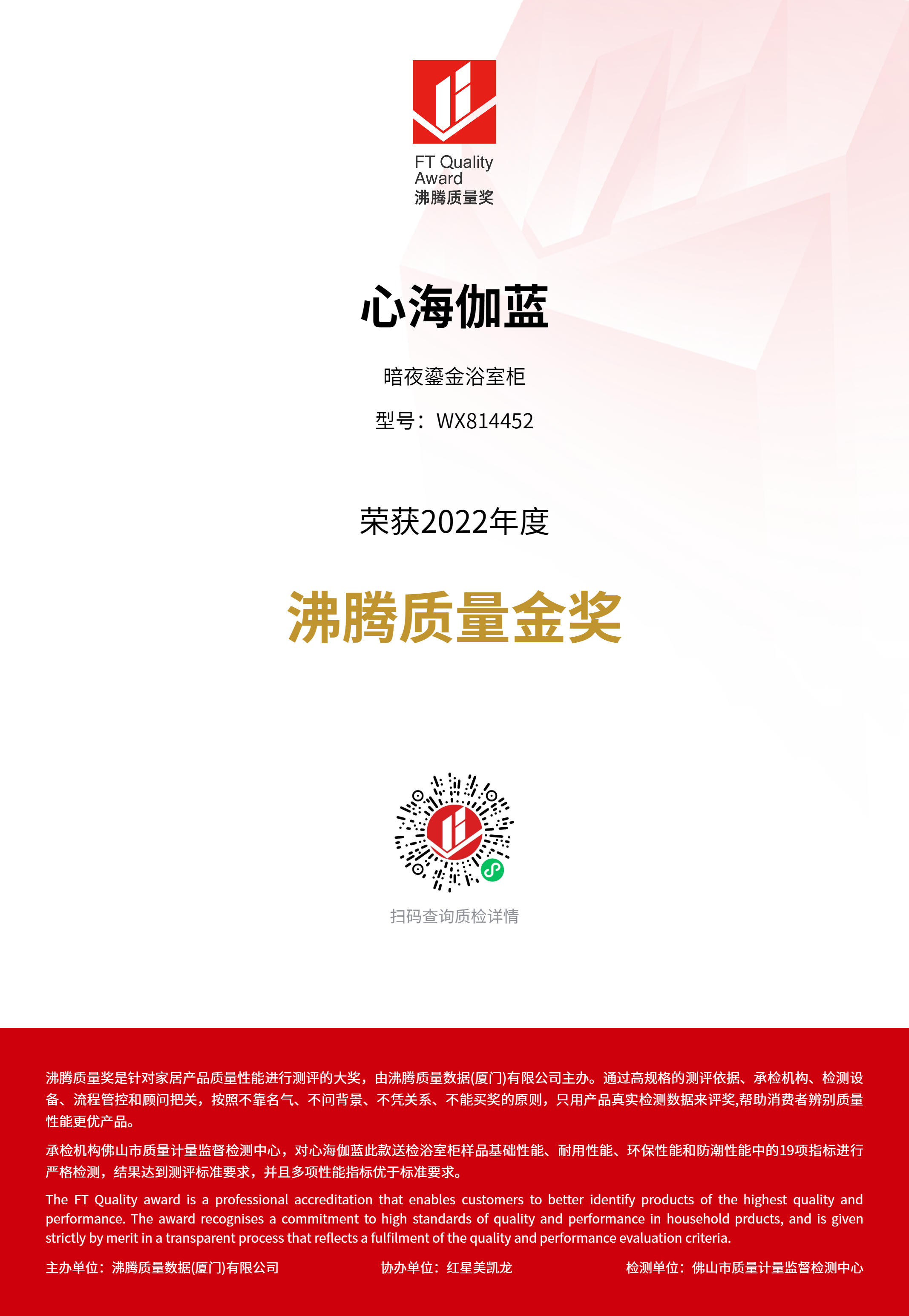 心海伽蓝先后荣获高新技术企业、广东省名牌产品、广东省守合同重信用企业、佛山标准企业、南海制造业全国隐形冠军、佛山优品、产品设计金象奖、红棉中国设计奖、沸腾杯、工匠楷模奖等多项国家级、省级行业级奖项,树立行业标杆,引领着行业的发展。