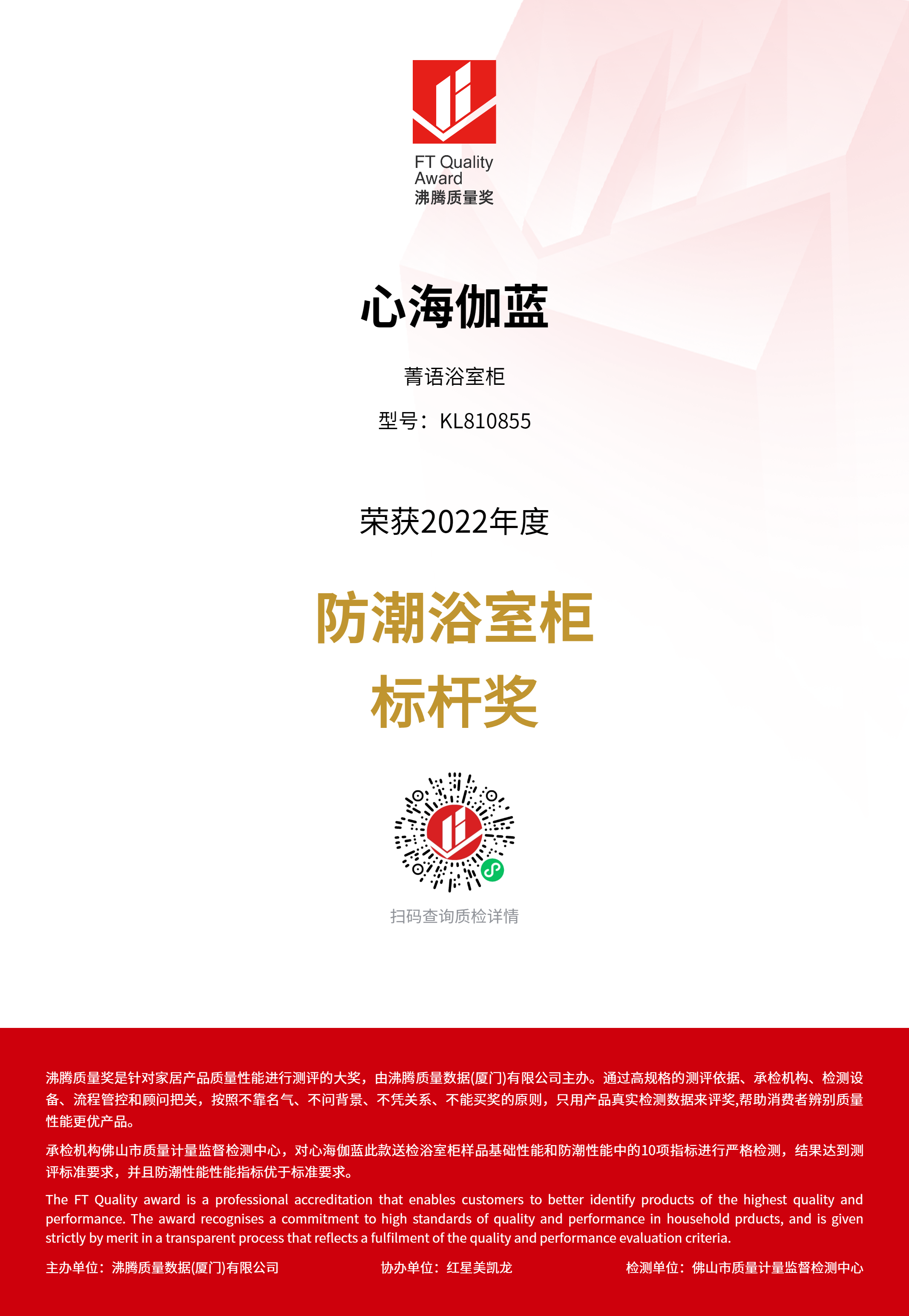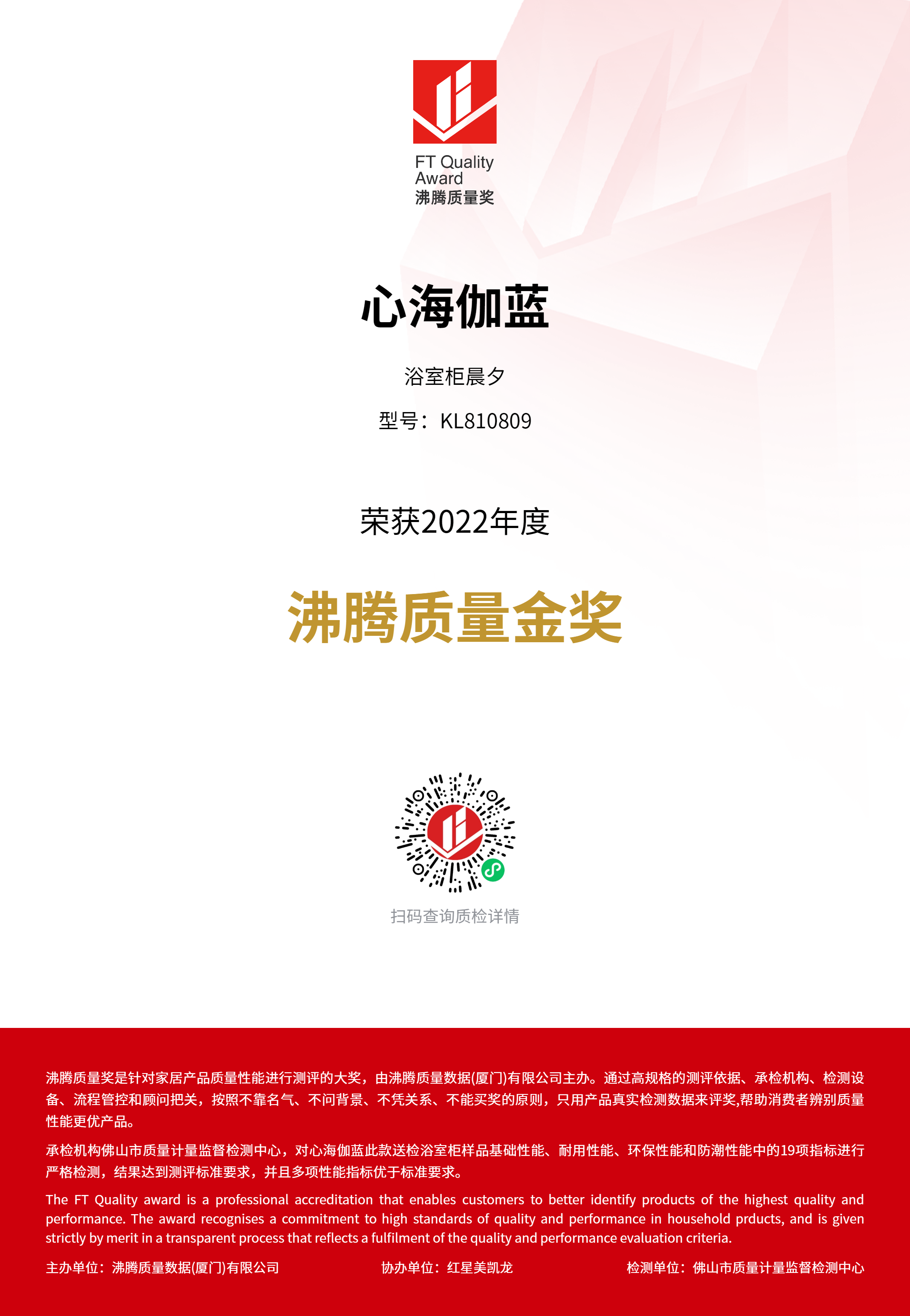 先后连续多次获得“中国名优产品”“中国优秀绿色环保产品”“红棉中国设计奖”“沸腾杯质量安全奖”“中国浴室柜十大品牌”“中国十大卫浴品牌”“中国厨卫百强”等荣誉称号,引领着浴室柜行业的发展,并对卫浴行业产生深远的影响。