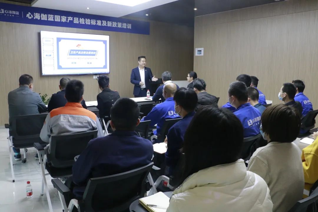3月24日,国家陶瓷及水暖卫浴产品质量监督检验中心副主任区卓琨、高级工程师杨志雄应邀前往心海伽蓝培训宣导,解读卫浴产品国家检验标准。