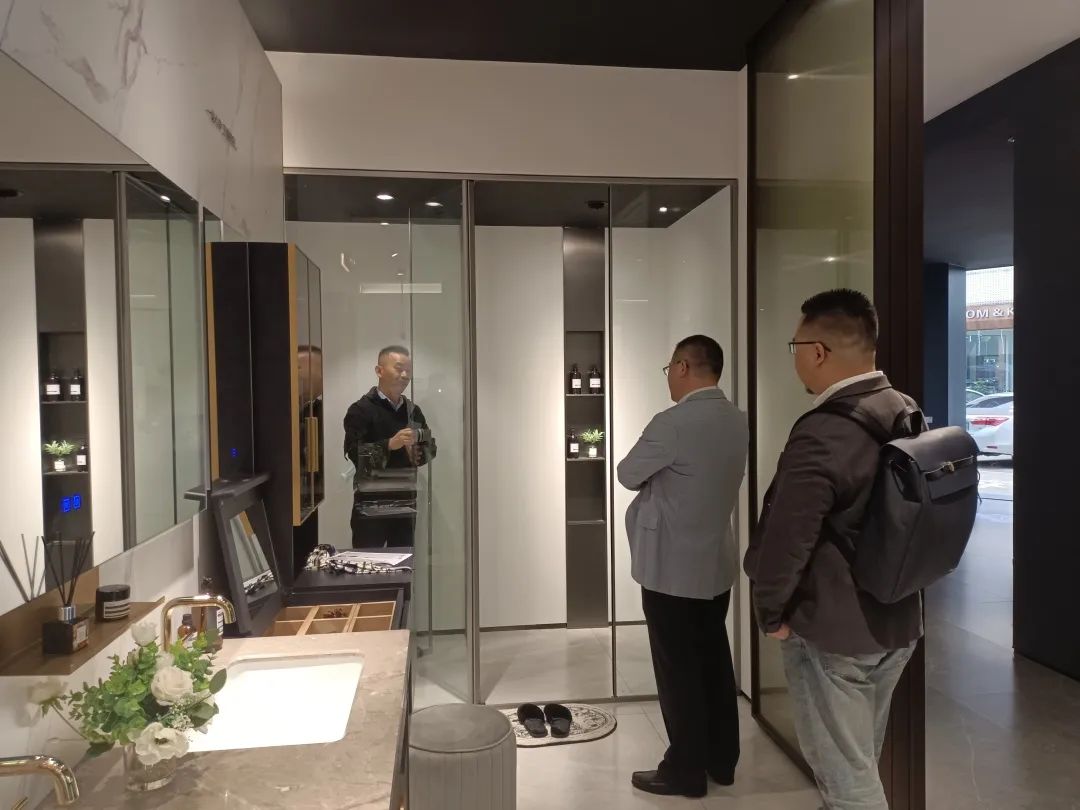 周总一行率先参观了心海伽蓝佛山千方旗舰店展厅,高总对终端店面形象、设计营销,产品研发等方向进行了详细阐述;月星家居集团周总一行对伽蓝的店面形象与产品设计表达了高度认可。