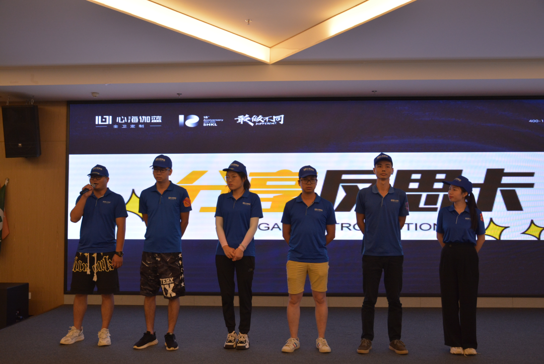 温总带领大家念出了庄严而令人斗志昂扬的宣誓词,“我是飞鹰,是伽蓝的雄鹰,使命就是飞翔”。飞鹰计划的学员是伽蓝公司的中坚力量,他们的认真负责与正直自信能够影响周围的同事,更代表着对企业“感恩,诚信,务实,创新”的价值观的坚守,飞鹰学员的声声宣誓,掷地有声,将团建活动推向了高潮。