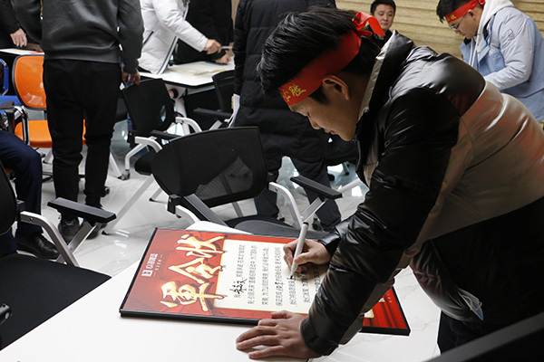 使命必达雄心下,谁与争锋将出征!本次招商活动的两大团队纷纷响应号召,充满斗志与力量的签下军令状,为实现招商目标而努力,言必信,行必果!