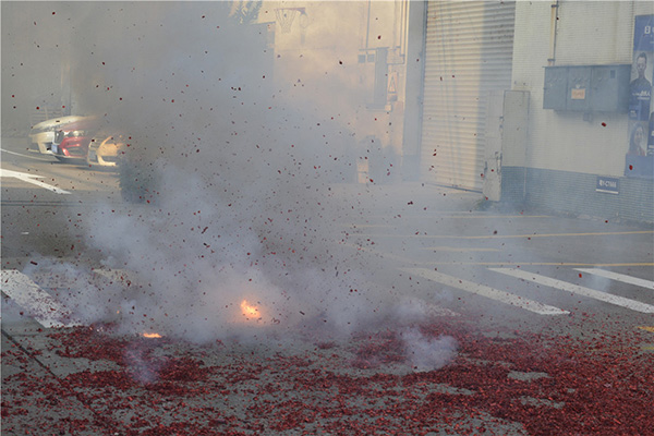 爆竹声声好运来,响亮的鞭炮声预示着伽蓝公司在新的一年里红红火火,牛气冲天!