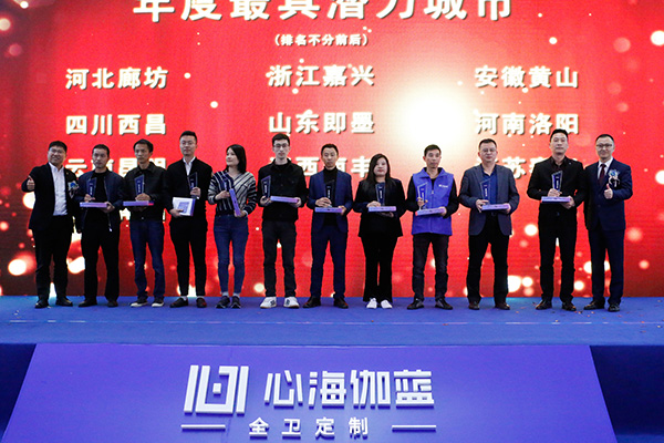 在会议上,伽蓝洁具董事长张爱民表示:2020年,伽蓝公司在终端走访行动中赋能,与终端经销商伙伴抱团共赢市场,取得业绩增长的好成绩;