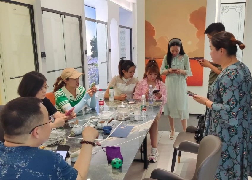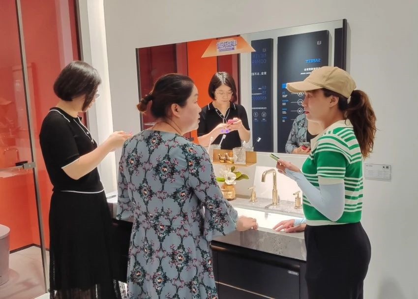 在充实的产品课程安排下,伽人们学习了浴室柜、陶瓷五金、淋浴房、智能镜、智能马桶,阳台柜在内的卫浴产品知识,并参观佛山旗舰展厅在销售实战中运用所学内容。