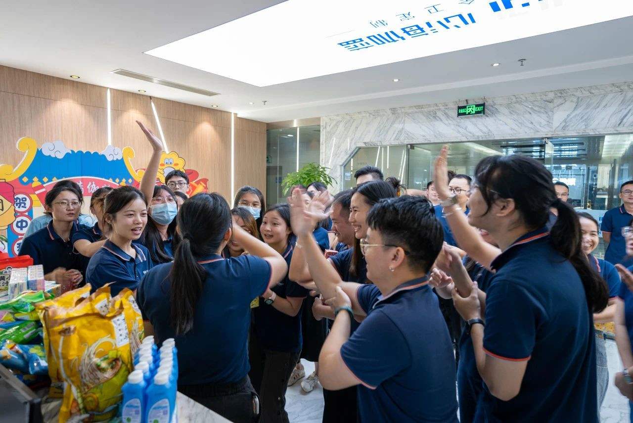 清远伽蓝生产基地举办了“月是故乡明,情是伽缘浓”中秋游园会,丢沙包、套圈,蒙眼敲鼓,投篮等一系列游戏,让伽人们一同释放童心,赢取礼物,体验欢笑与团结的力量。尖叫声、欢呼声此起彼伏,让人感受到了无限的快乐氛围。智慧新城营销中心将生日会与中秋活动创新结合,游戏参与氛围热烈,现场一片欢声笑语,在化解工作压力的同时,也拉近了同事之间的距离。