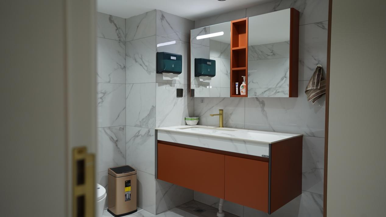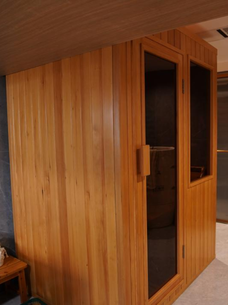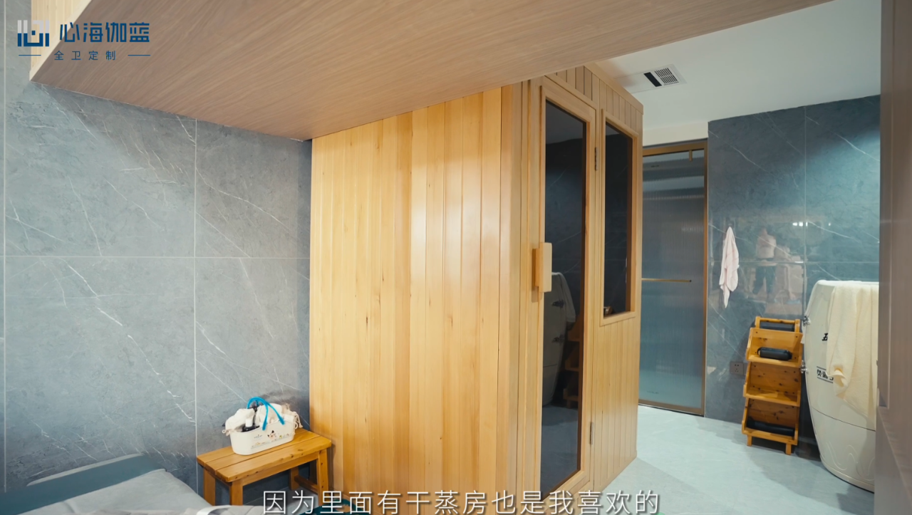 “全卫定制”为葛女士打造一个理想的浴室空间提供了便利。首先,定制浴室柜可充分利用空间,优化空间布局,在浴室中增加更多的储物空间,轻松地整理和收纳各种洗浴用品、护肤品,毛巾及生活其他必需品。其次,定制浴室间的设计可以避免卫生死角,确保每个角落都容易清洁和维护,有助于保持浴室的卫生,减少细菌滋生的机会,为家人提供一个更加健康和舒适的环境。最后,葛女士家里的卫浴空间很大,在规划外安装了汗蒸房,既可充分利用卫浴空间,又可get居家运动后的健康享受。