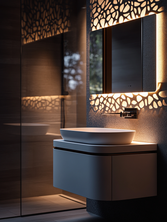 在每一个精致的家居空间里,细节往往决定了生活的品质。这组独具匠心的高定浴室柜,带来了一场现代与奢华、功能与艺术完美融合的设计盛宴。每一处细节的打磨,都是对美学与功能的深刻理解,让浴室空间从实用的功能区,升华为艺术氛围浓厚的私密空间。