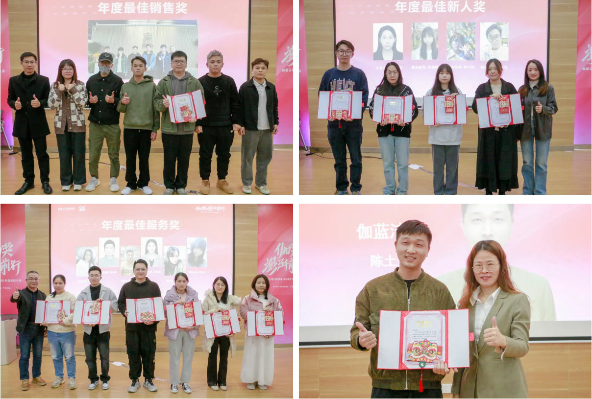 最佳新人奖率先揭晓,获奖伽人用实际行动诠释付出和奉献。他们在短短时间内脱颖而出,做出了不平凡的贡献,是伽蓝人的榜样和骄傲。此外,“年度最佳服务奖”“年度优秀员工奖”“年度最佳管理奖”“年度最佳团队奖”“年度最佳贡献奖”“年度销售冠军奖”等多项荣誉奖项也相继颁发。每一个奖项背后,都是伽蓝人用心力与汗水谱写的动人篇章。获奖伽人与团队在各自领域中发挥了先锋作用,诠释着伽蓝发展的中坚力量。