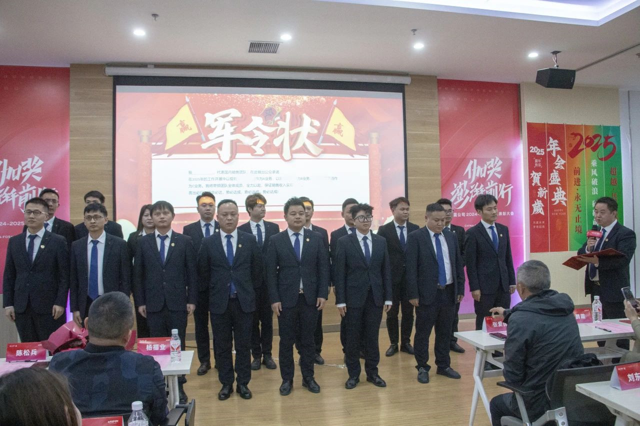 表彰结束后,各分公司各部门销售精英进行了庄严的企业宣誓仪式。伴随着部门领导的领誓,伽蓝人以坚定的语调,洪亮的嗓音庄严许下了对企业的承诺与对未来的期望:同心协力,携手共进,为伽蓝2025更辉煌的未来而奋斗!宣誓现场气氛热烈而振奋,所有伽人都充满了信心与力量。