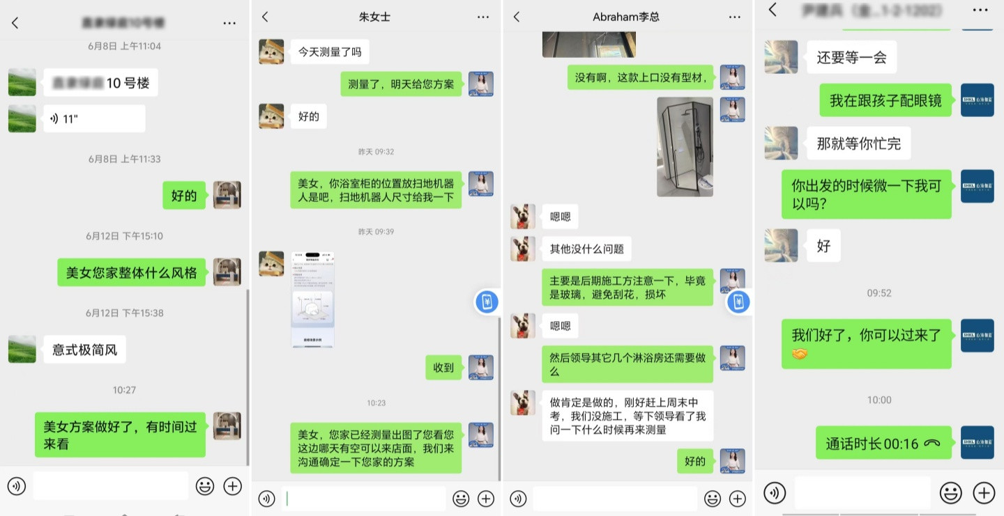 伽蓝总部联动区域门店打造抖音内容矩阵,通过抖音线上引流,吸引更多客户到店。同时,门店导购化身“私人定制顾问”,通过微信为客户在线答疑解惑,并邀约客户到店,促进成交。