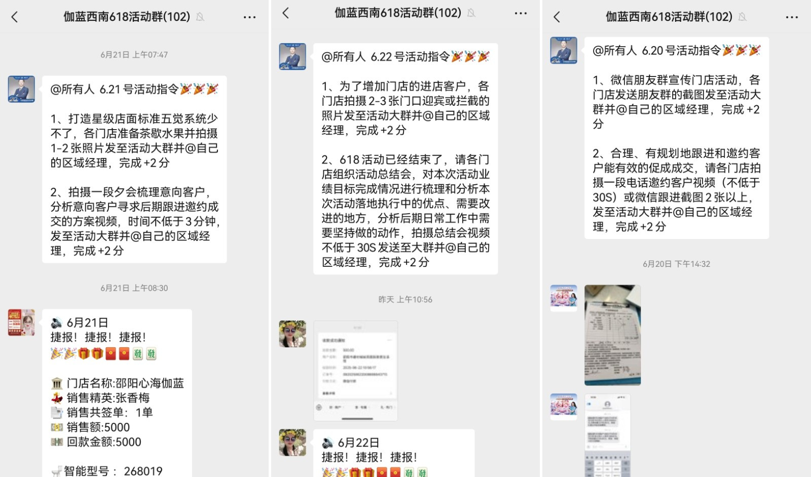 本次活动以“总部统筹、大区督战、门店落地”的三级联动方式推进。由总部统一制定活动策略与资源支持,各大区经理每日线上发布任务指令,确保全国门店步调一致。