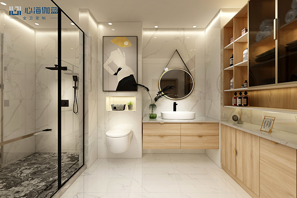 整个卫生间采用的是北欧风原木色,清新淡雅的同时带有不一样的简约森林气息,让人能够心情平静舒适,减弱日常的烦躁感。