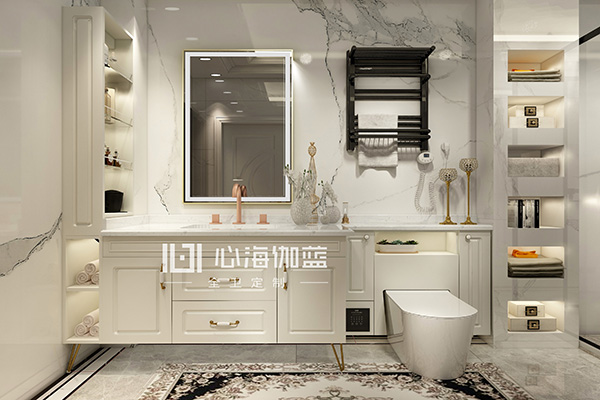 素雅的白色美式风格浴室柜,布局营造酒店超大空间感。