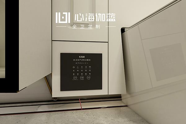 底下还有个空气清新机,上厕所不怕臭味熏天。中间的隔墙挖个落地壁龛,分成留格储物,层层置放。