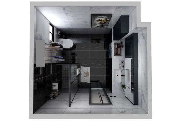 空间一边是洗漱区+洗衣区,另一边便是淋浴区+晾衣区,保证空间干湿分离的同时,让淋浴,洗衣,晾衣都一步到位,把空间利用到极致。