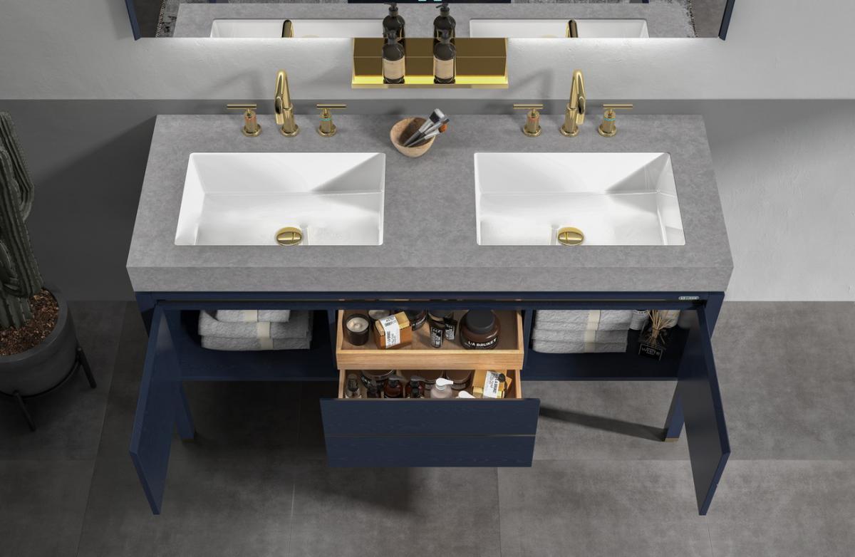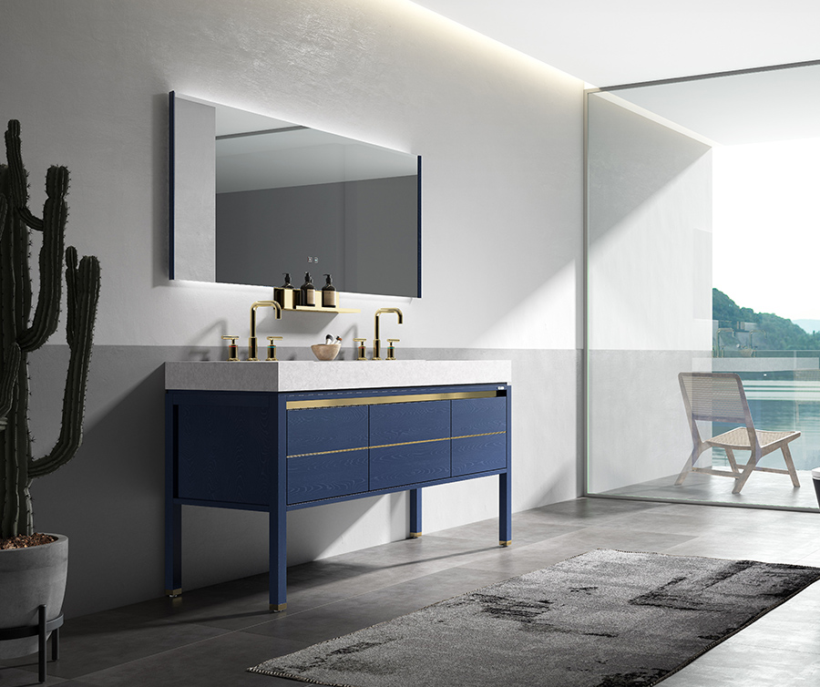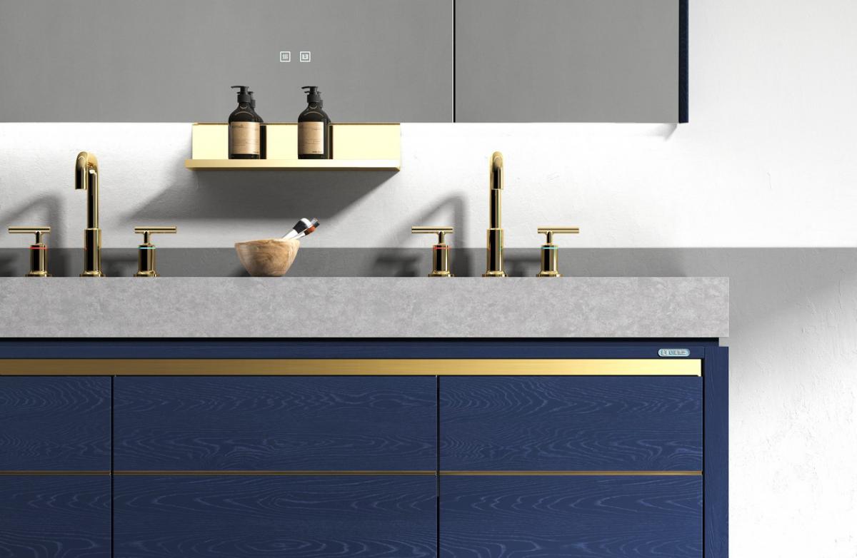 【主柜颜色】:星空蓝+清漆色(抽屉)+描金+不锈钢