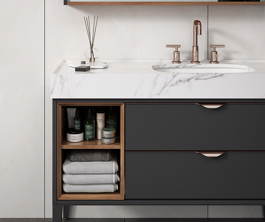 【主柜颜色】:哑黑色 + 核桃色 + 玫瑰金 + 清漆色 ( 抽屉 )