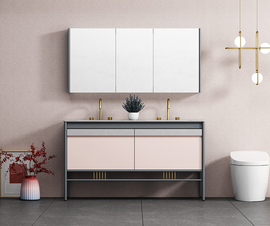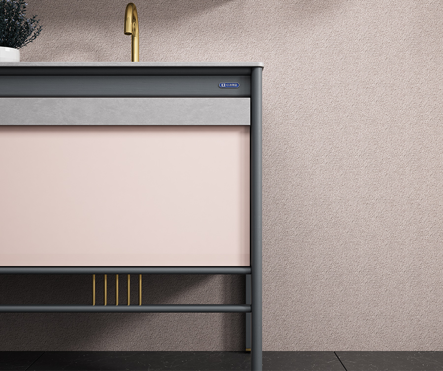 【主柜颜色】:罗布灰开放漆 + 樱草粉 ( 亮光 )+ 钛金拉丝