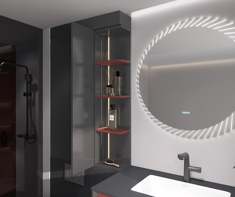 【功 能】:精致富有艺术感圆镜、照亮每一天的精致生活,让完美细节成为日常,高柜到顶,释放储物空间物尽其用,寻觅生活确幸,抽內设计专属收纳件分类细致,置物清晰,拿取方便兼。