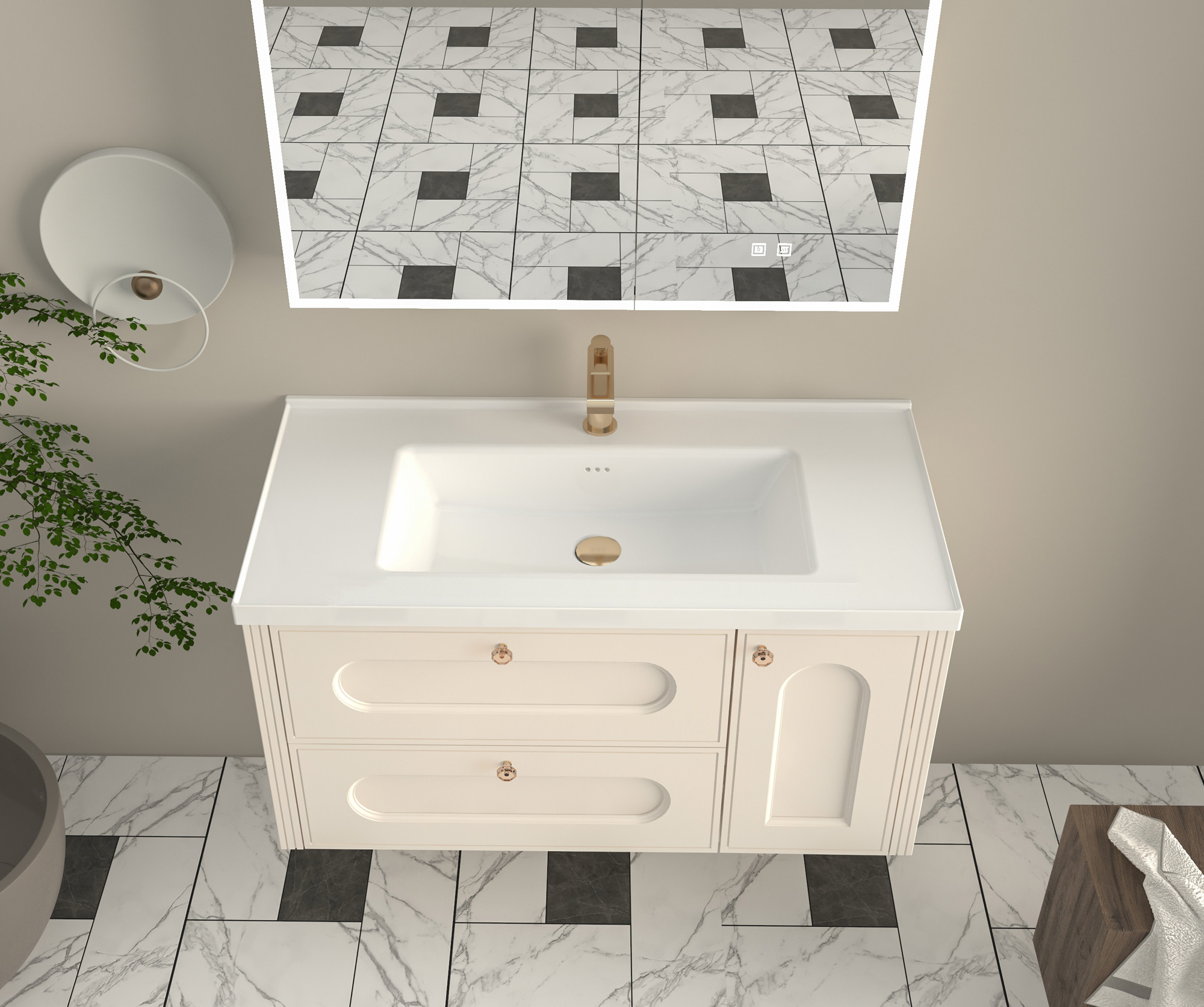 【主柜颜色】:奶油霜白免漆板+奶油霜白实色漆