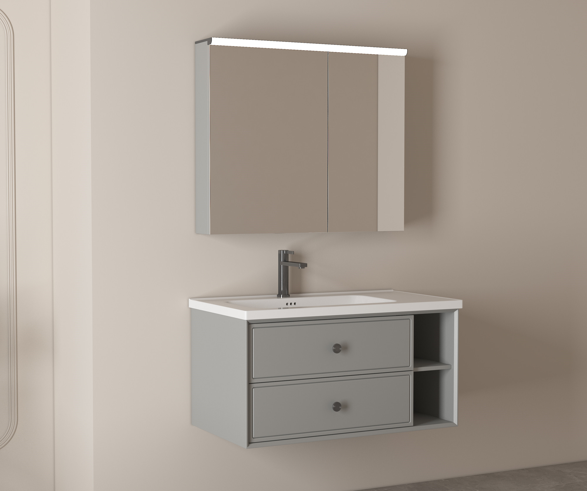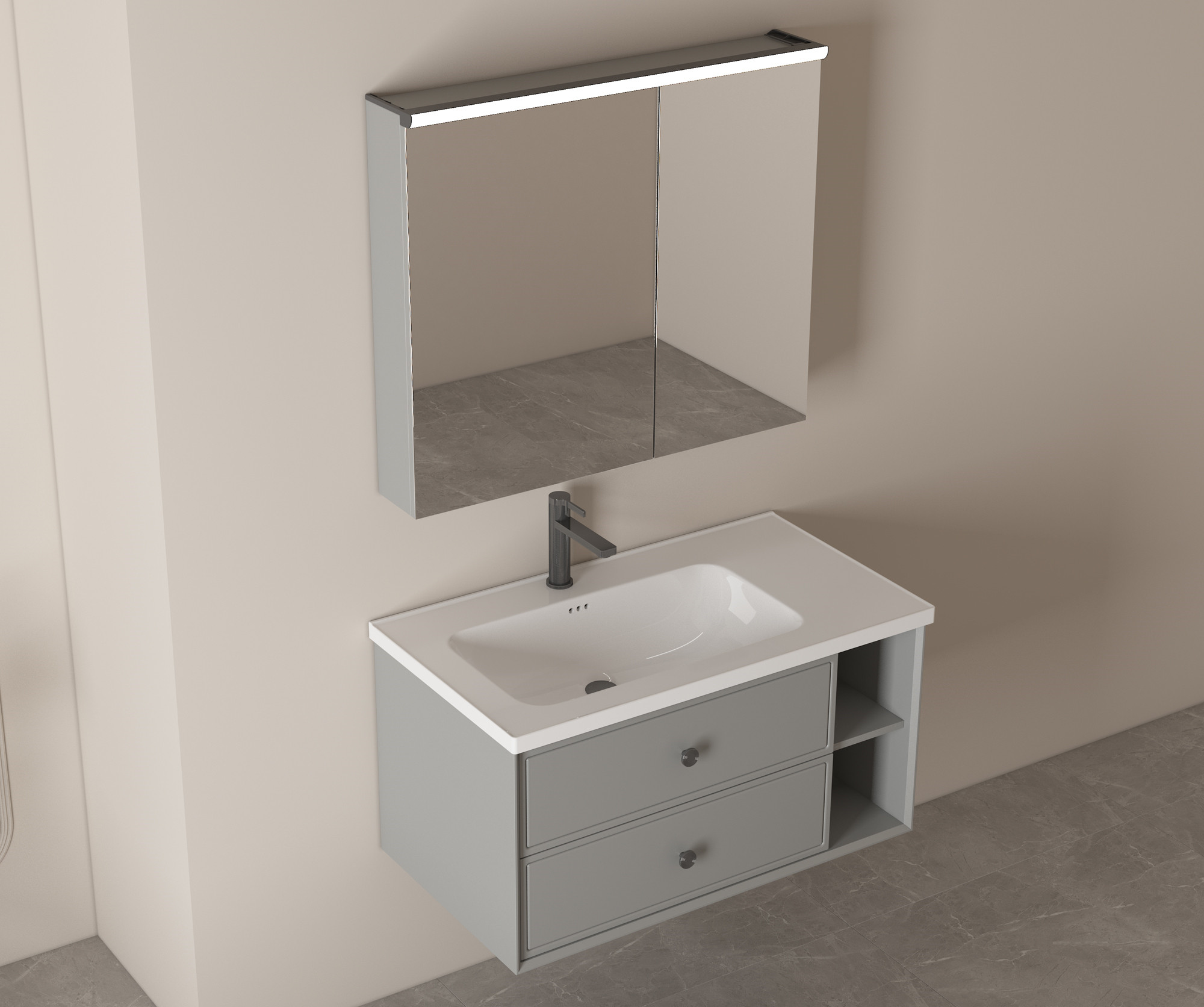 【主柜颜色】:银河灰免漆板+银河灰油漆