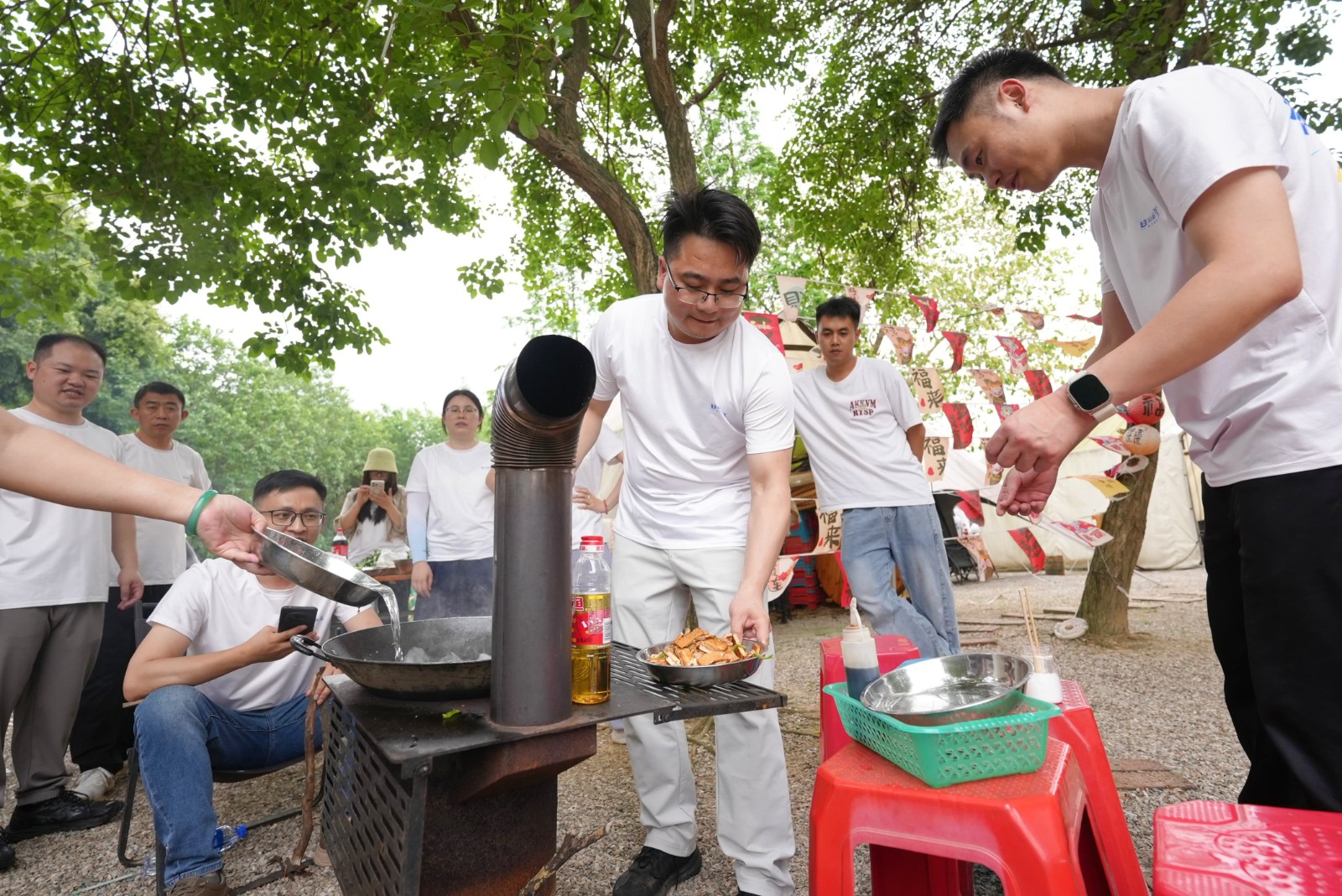 经过上午紧张的比拼后,各小组转战野炊区,厨神争霸赛火热开启。洗菜切配、生火掌勺,平日里独当一面的业务骨干纷纷化身厨艺高手。